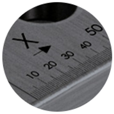 | Fijne schaalverdelingAsaanduiding in x- en y-richting. Wordt standaard geleverd met fijne schaalverdeling. | VerzinkingBouten en klemhaken zijn optimaal inbrengbaar en bieden tegelijkertijd bescherming van het tafeloppervlak tegen materiaalophopingen, zelfs bij extreme belasting van de systeemboring of bij gebruik met aluminium. | Extra boringenExtra boringen in zijkanten voor meer opspanmogelijkheden. | Poot met hulsDe huls aan de voet voorkomt beklemming en vermindert slijtage aan de kabels en slangen. Bovendien wordt ook de draadspindel beschermd voor vervuiling en slijtage. Fijne aanpassingen zijn mogelijk voor een stabiele fixatie. |