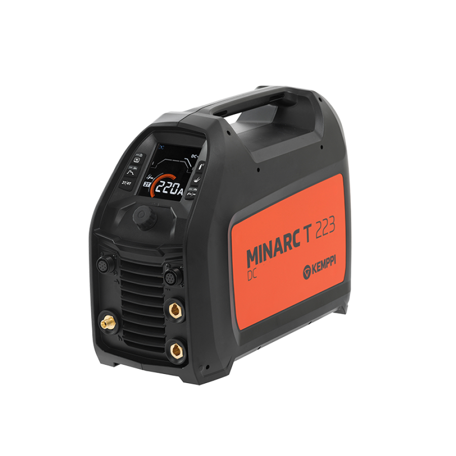 De Minarc T 223 DC, 230 V, is een draagbaar, compact, maar krachtig TIG-lasapparaat, ontworpen voor lassers die op locatie werken. Met een vermogen van 220 ampère levert dit draagbare lasapparaat nauwkeurige DC TIG- en MMA-prestaties en wordt het beschermd door een duurzame en stijlvolle gegoten behuizing. De Minarc T 223 DC is uitgerust met PFC-technologie voor een energiezuinige werking en presteert uitstekend bij gebruik met lange stroomkabels. De boogontsteking is nauwkeurig en betrouwbaar. De machine beschikt over gasvoor- en nastroom, up- en downslope functies en vier geheugenkanalen.